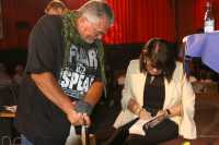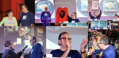 Frank stellte die Fragen zum neuen Buch, zum Schreiben an sich, zur Autorin Isabella und diese antwortete und las Kostproben aus ihrem neuesten Krimi „Die Schlange von Sirmione”. Was heißt „las”? Die gelernte Schauspielerin trug einige Passagen frei vor und amüsierte das Publikum mit einer exquisiten Traumreise an einen vermeintlich paradiesischen Strand. Sie drängte aber auch Frank, mal was eigenes vorzulesen, so kamen alle in den Genuss seiner zwei aktuellsten Kolumnen.