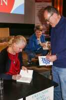 Einblicke ins Schreiben und ihre Schreibprozesse rundeten den Leseabend ab, beim Signieren bildete sich eine lange Schlange, die Autorin erfüllte bereitwillig alle Wünsche, anschließend waren sich alle Beteiligten einig: Eine rundum gelungene Veranstaltung der Bücherhütte Wadern in Kooperation mit dem Kulturamt der Stadt Wadern und den Filmfreunden Wadern im Rahmen von erLESEN! 2025!