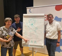 Eine Menge Fragen der Schülerinnen und Schüler und gesprochene, manchmal auch gezeichnete, Antworten des Illustrators rundeten den gelungenen Vormittag ab. Gipfel der Veranstaltung für die Mehrzahl der Kids waren sicherlich Timos Kostproben seiner Horrorfiguren, die zeichnet er nämlich auch, normalerweise für Bücher für ein etwas erwachseneres Publikum. :-)