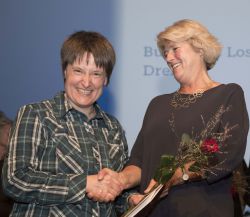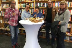 Heidelberg ist eine Reise wert... zum Beispiel zum Deutschen Buchhandlungspreis 2016. Denn im Heidelberger Theater fand die festliche Verleihung des Deutschen Buchhandlungspreises statt. Kulturstaatsministerin Monika Grütters hat uns mit 117 anderen, unabhängigen und inhabergeführten Buchhandlungen mit dem Deutschen Buchhandlungspreis 2016 ausgezeichnet. Ist das nicht wunderbar?! Der offizielle Wortlaut der Nominierung: „Mit dem Deutschen Buchhandlungspreis werden kleinere, inhabergeführte Buchhandlungen mit Sitz in Deutschland ausgezeichnet, die ein anspruchsvolles und vielseitiges literarisches Sortiment und/oder ein kulturelles Veranstaltungsprogramm anbieten, innovative Geschäftsmodelle verfolgen bzw. sich im Bereich der Lese- und Literaturförderung für Kinder und Jugendliche engagieren.” Wir sind jetzt mit Brief und (Güte-)Siegel „hervorragende Buchhandlung”. Eine großartige Anerkennung unserer Arbeit, ganz sicher nicht alltäglich und das gibt uns allen, schon seit wir von der Nominierung wissen, ganz neuen Schwung. Die Wertschätzung, die wir seither von Ihnen allen persönlich erfahren, tut das ihre. Einfach eine ganz große Zeit, die wir im Moment mit diesem Preis haben. Und das alles haben wir dann auch zuhause – mit Ihnen – gefeiert: Beim Waderner Herbst luden wir alle zu einem Glas Sekt und Laugengebäck ein, den ganzen Nachmittag gab es viel Besuch in der Bücherhütte und so wurde der „Umtrunk” mit unseren KundInnen und KollegInnen und FreundInnen zur Feier unseres Deutschen Buchhandlungspreises eine rundum gelungene Sache. Auch rundherum passte alles prima, denn es war tolles Wetter und richtig viel los in Wadern. Und bei uns drin halt viele liebe Leute, die mit uns angestoßen haben, uns gratuliert haben, sich mit uns freuen!  |