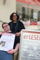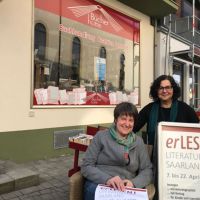 Kunstroute Wadern 2018Am Palmsonntag feierten wir bereits die achte Kunstroute Wadern. Bei strahlendem Sonnenschein fanden viele Menschen den Weg nach Wadern und zu Martina Tilch bei uns in der Bücherhütte. Sie hatte wunderschöne neue Sachen mitgebracht, unsere Kunden und ihre „Fans” waren begeistert, der Besuch bei uns hat sich gelohnt. Selbst die weitestangereisten KollegInnen aus Kirkel-Limbach haben sich mit ein paar echten Tilchs eingedeckt! Und Werbe-Photos fürs bald beginnende saarländische Literaturfestival erLESEN gemacht (siehe weiter oben!)!  |