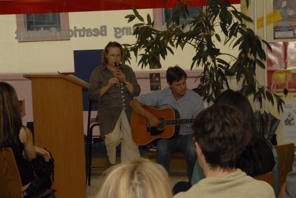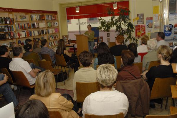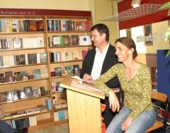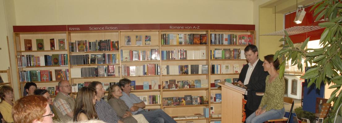 Am HolländerkopfLesung von Karin KleeAm 23. April 2007, dem "Welttag des Buches", stellte Karin Klee bei uns in der Bücherhütte in Wadern ihre kürzlich erschienene Novelle "Am Holländerkopf" vor. Roland Buhles vom Conte Verlag eröffnete die Buchpremiere mit einer kurzen Einführung. Darin ging er auf eine der Stärken der Erzählung ein: Er erinnerte die Zuhörer daran, dass häufig schwer zu entscheiden ist, wer (oder was) eigentlich normal ist. Denn die Hauptfigur des Buchs ist ein Landwirt im Nordsaarland, der an Schizophrenie leidet. Doch beim Lesen erscheinen seine Gedankengänge eher normal oder höchstens normal verrückt; erst sein tragisches Ende macht die Schwere seiner Krankheit deutlich. Karin meisterte die Herausforderung der Lesung trotz ihrer krankheitsbedingten Leseschwäche hervorragend. Die Schriftstellerin unterhielt ihr Publikum mit der Lektüre von vier Schlüsselszenen ihres Buchs. Auflockernde Gitarrenstücke, dargebracht von Christoph Clemens aus Homburg, waren mit viel Feingefühl passend zum Text dazwischen gestreut. Die rund 50 Zuhörer waren höchst zufrieden. "Ich finde die Mischung aus Fiktion und Realität besonders gelungen", betonte Buchhändlerin Beatrice Schmitt, „ausgehend von einem authentischen Fall ist Karin Klee eine spannende und bewegende Erzählung gelungen.” Besonders freute die Autorin sich, dass auch die Waderner Künstlerin Marianne Aatz, deren Gemälde „Judith und Holofernes” als Vorlage für das Umschlag-Cover diente, an diesem Abend den Weg in die Bücherhütte fand. Text und Bilder © 2007 Bücherhütte Wadern.  |