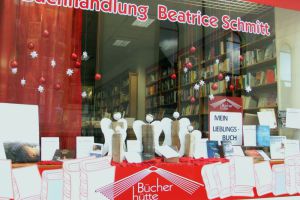Ende 2012 hatte die Bücherhütte ein neu dekoriertes Schaufenster. Ein besonderes neu dekoriertes Schaufenster:  Zu bestaunen gab's diesmal Lieblingsbücher unserer Kunden!