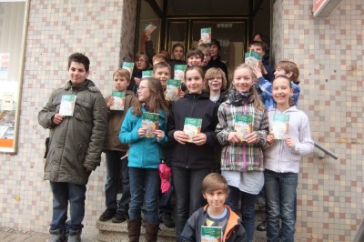Wie jedes Jahr gab es auch in 2012 zum Welttag des Buches unsere „Ich schenk dir eine Geschichte”-Aktionen: In der Zeit um den Welttag herum bekamen wieder etliche Schulklassen die Möglichkeit zu Stippvisiten bei uns. Angemeldete Schulklassen kamen, meist morgens früh vor Ladenöffnung, vorbei, erfuhren von uns einiges über Bücher, den Buchhandel und die Bücherhütte. Danach durften alle ihre Geschenkbuch-Gutscheine einlösen und auf Abenteuer-Schnitzeljagd durch die Waderner „City” gehen. Gute Rückmeldungen und begeisterte Kids gab's bisher bei jeder dieser Aktionen, wie zu erwarten war das dieses Jahr genauso :). Hier gibt es schon mal ein paar Bilder von der Erweiterten Realschule Weiskirchen und dem HWG.